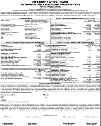 ΚΙΣΣΑΒΟΣ ΔΡΟΣΕΡΗ ΡΑΧΗ ΜΟΝΟΠΡΟΣΩΠΗ ΑΝΩΝΥΜΗ ΕΤΑΙΡΕΙΑ ΑΝΑΝΕΩΣΙΜΩΝ ΠΗΓΩΝ ΕΝΕΡΓΕΙΑΣ