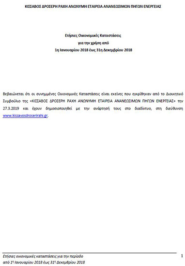 Για να κατεβάσετε τις Χρηματοοικονομικές Καταστάσεις του 2018 πατήστε εδώ