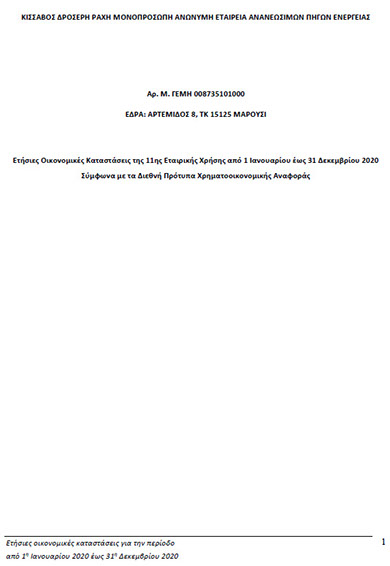 ΚΙΣΣΑΒΟΣ ΔΡΟΣΕΡΗ ΡΑΧΗ ΜΟΝΟΠΡΟΣΩΠΗ ΑΝΩΝΥΜΗ ΕΤΑΙΡΕΙΑ ΑΝΑΝΕΩΣΙΜΩΝ ΠΗΓΩΝ ΕΝΕΡΓΕΙΑΣ
