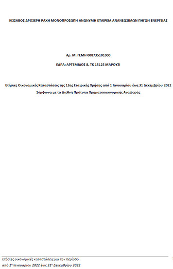 ΚΙΣΣΑΒΟΣ ΔΡΟΣΕΡΗ ΡΑΧΗ ΜΟΝΟΠΡΟΣΩΠΗ ΑΝΩΝΥΜΗ ΕΤΑΙΡΕΙΑ ΑΝΑΝΕΩΣΙΜΩΝ ΠΗΓΩΝ ΕΝΕΡΓΕΙΑΣ