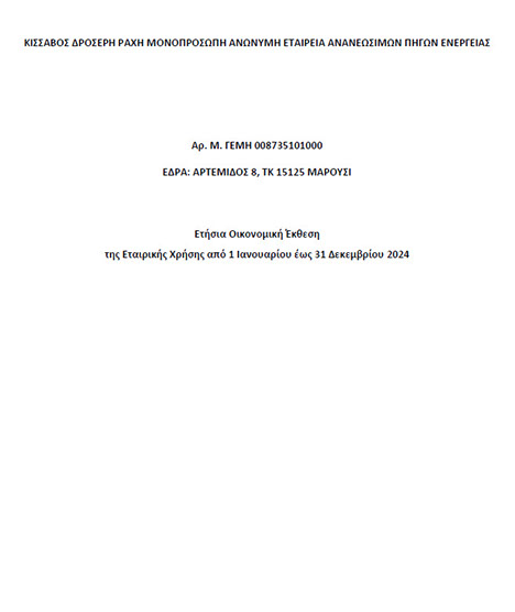 ΚΙΣΣΑΒΟΣ ΔΡΟΣΕΡΗ ΡΑΧΗ ΜΟΝΟΠΡΟΣΩΠΗ ΑΝΩΝΥΜΗ ΕΤΑΙΡΕΙΑ ΑΝΑΝΕΩΣΙΜΩΝ ΠΗΓΩΝ ΕΝΕΡΓΕΙΑΣ